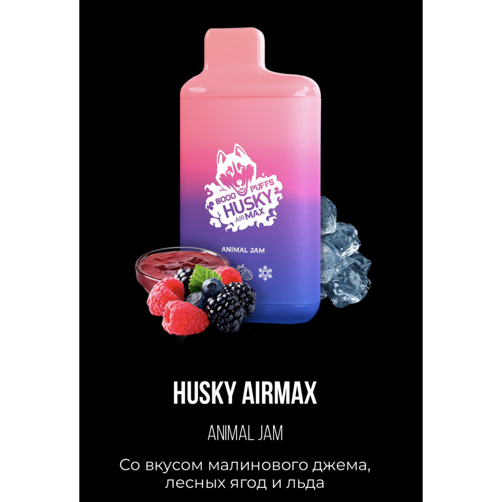 Электронная сигарета Хаски Аир Макс Малиновый Джем Лесные Ягоды со Льдом (Husky Airmax Animal Jam) на 8000 затяжек